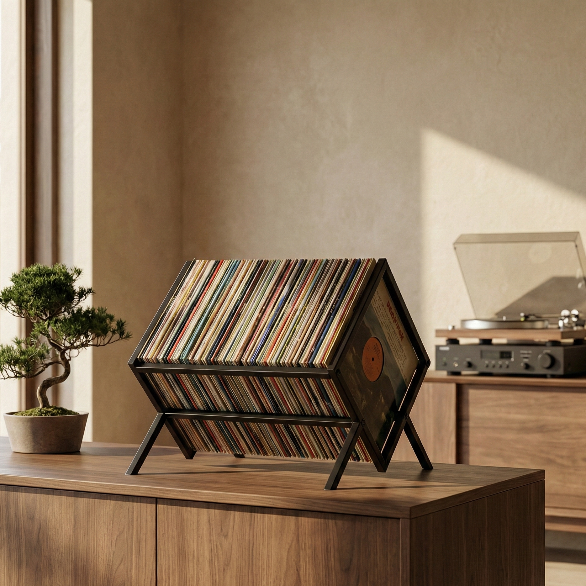 Minimalistisch Platenrek – Zwart Staal