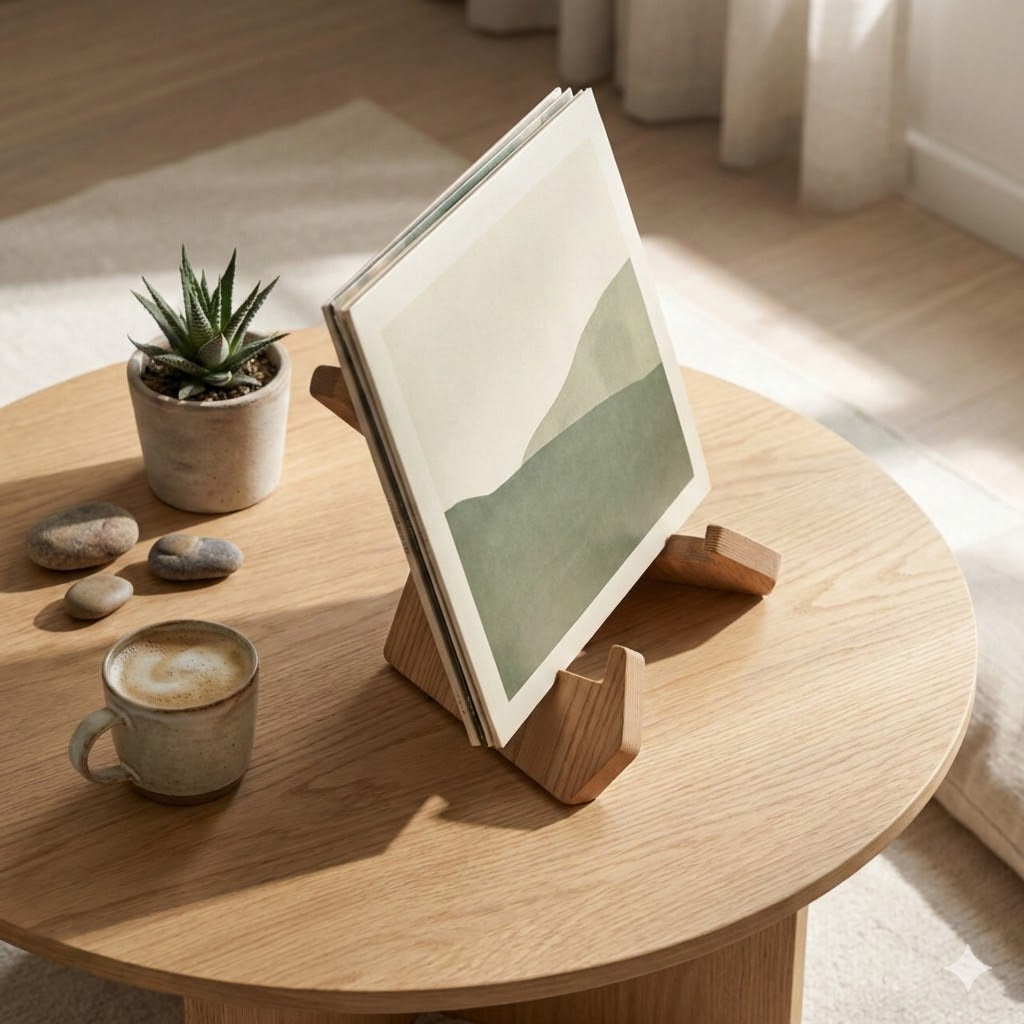 Losse stapeltjes op tafel glijden weg en ogen onrustig. De Japandi Kruishouder brengt balans terug in je interieur. Transformeer je dagelijkse luisterselectie van een rommelige stapel naar een esthetisch statement. Warm hout, strakke lijnen en je favoriete platen stabiel binnen handbereik.
